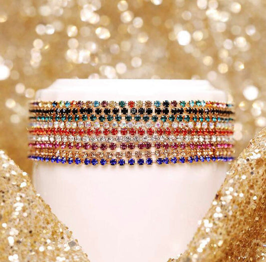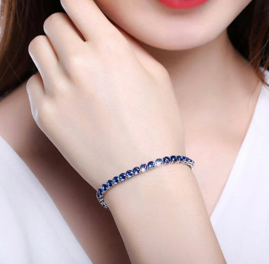Blue silver plated cubic zirconia studded adjustable tennis bracelets